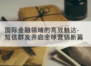 在全球化浪潮席卷的今天,金融行业的竞争早已突破地域限制,如何快速短信家国际短信平台触达全球客户,成为企业抢占市场的关键。国际短信群发营销凭借其覆盖广、成本低、响应快的优势,正成为金融企业开拓海外市场的“秘密武器”。无论是跨境支付、外汇交易还是海外投资服务,一条短信就能让信息瞬间抵达目标用户,让品牌影响力跨越山海。金融行业对信息传递的时效性和准确性要求极高。国际金融短信通知不仅能实时推送交易提醒、账户变动等关键信