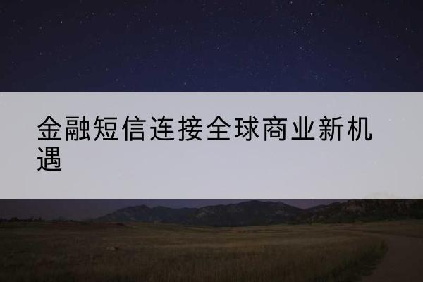 在全球化经济浪潮中,金融信息的即时传递成为推动商业发展的重要力量。无论是跨境支付确认、账户安全提醒,还是投资机会通知,金融短信正以前所未有的短信家国际短信平台方式,将短信家国际短信平台各地的人们紧密联系在一起。这种即时沟通不仅提升了金融服务效率,也为企业开拓国际市场创造了更多可能性。就选短信家